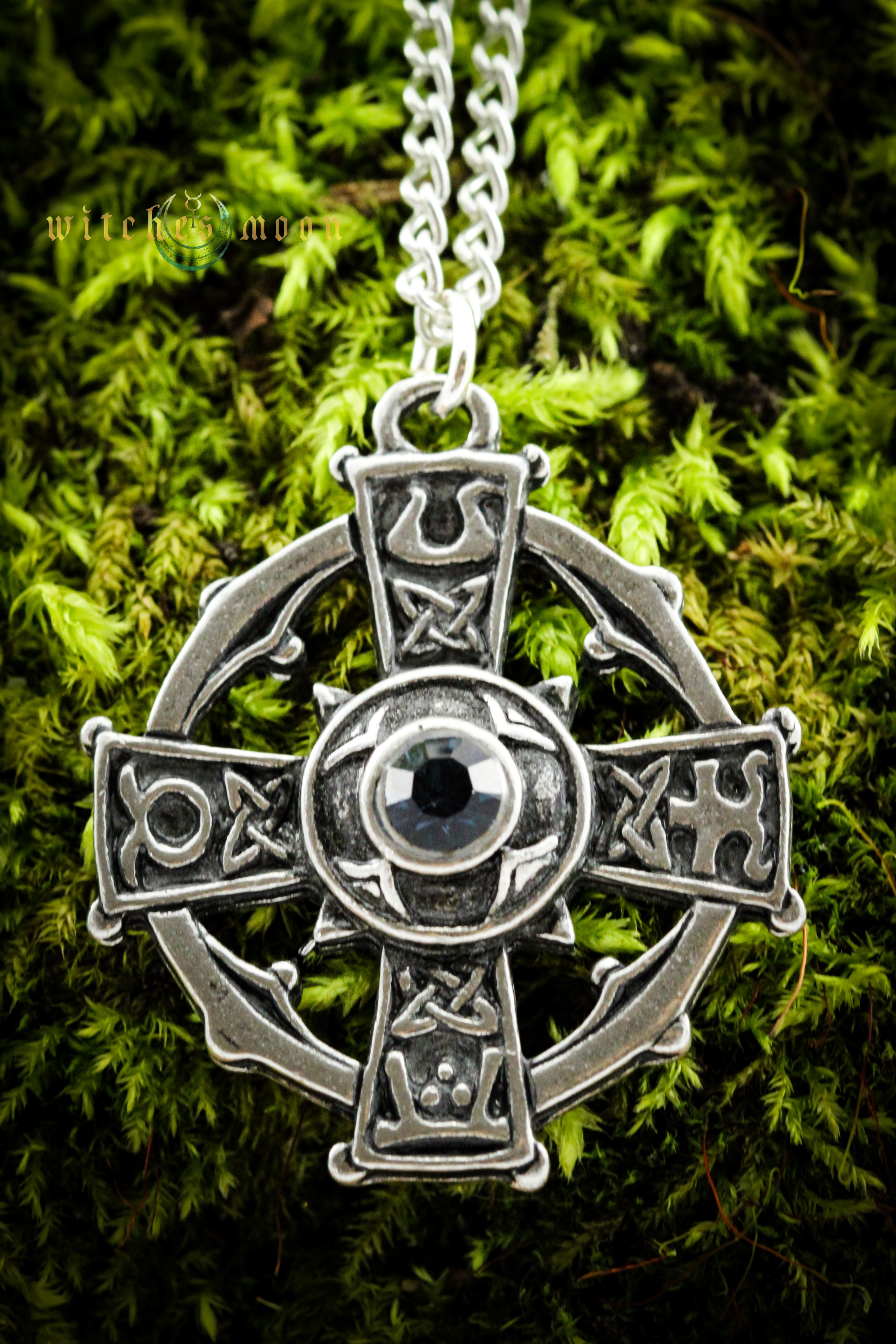 Incorporating the Celtic signs for Spring, Summer, Autumn and Winter, this equilateral cross was worn to balance the elemental and is worn for Season Grace. Pendant with a chain, in a black plastic box 80x55x20, meaning inside box lid