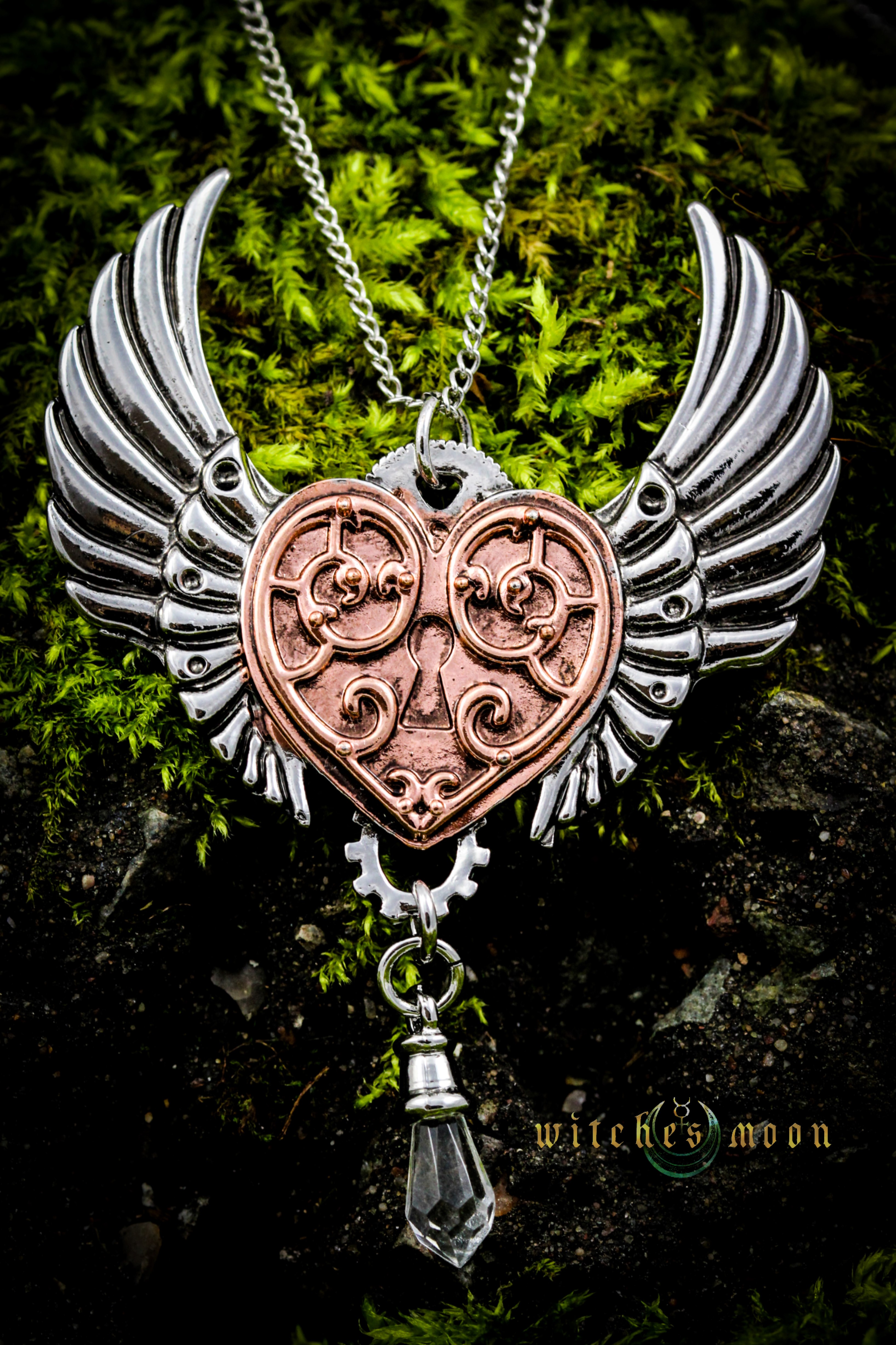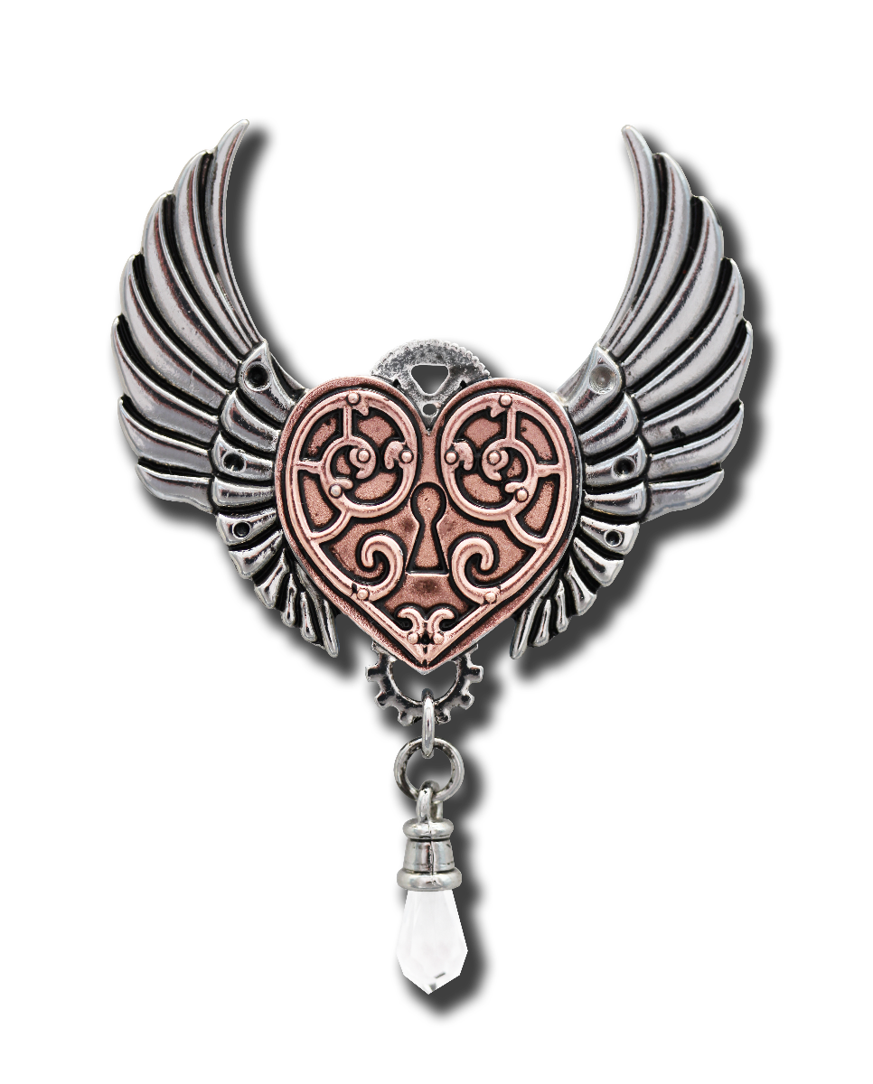 Valkyrie’s Heart represents the maiden attendant upon Odin; she is the keeper of the souls of warriors who fought bravely against evil. Features dangling man-made clear faceted crystal.
