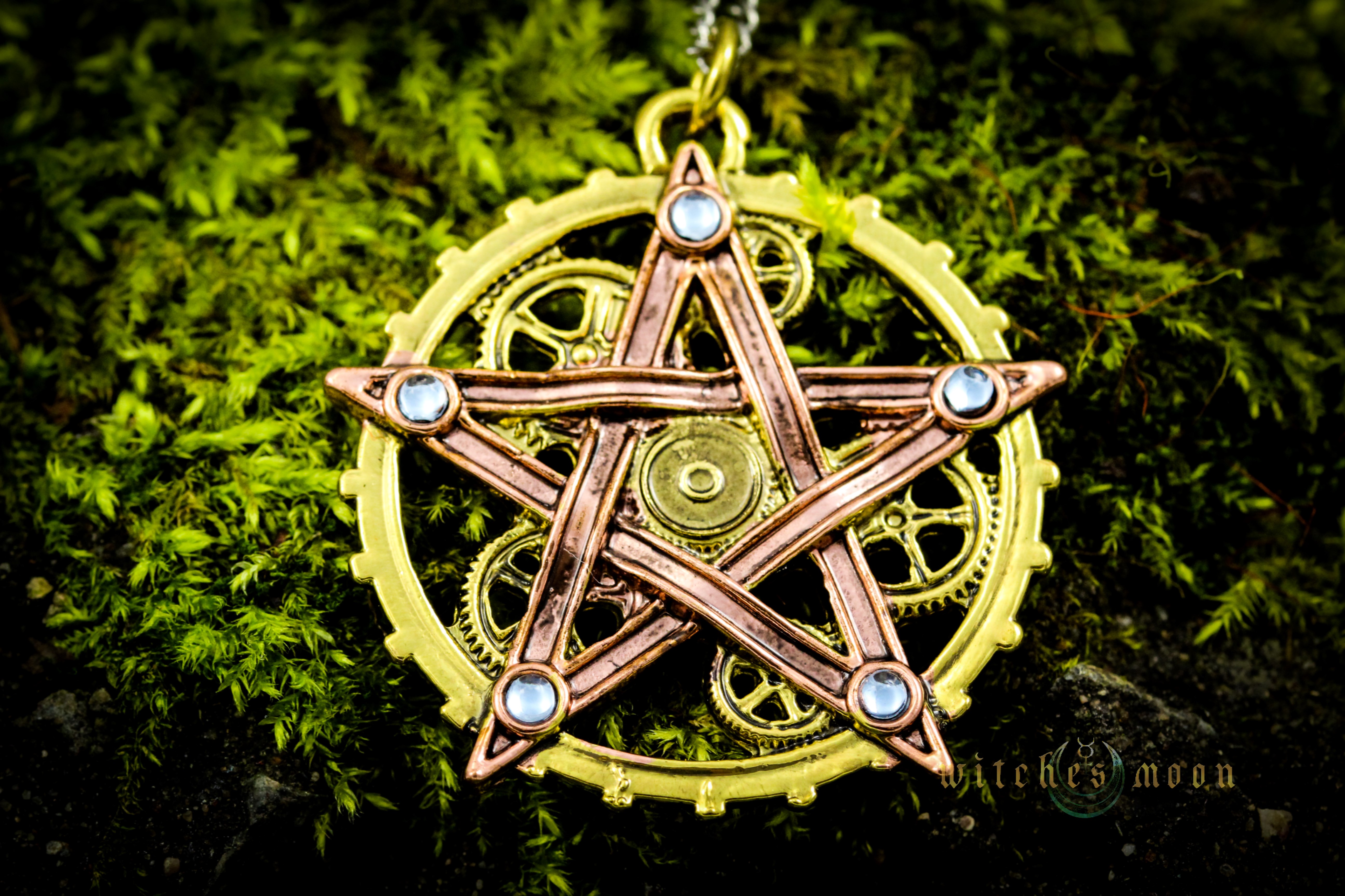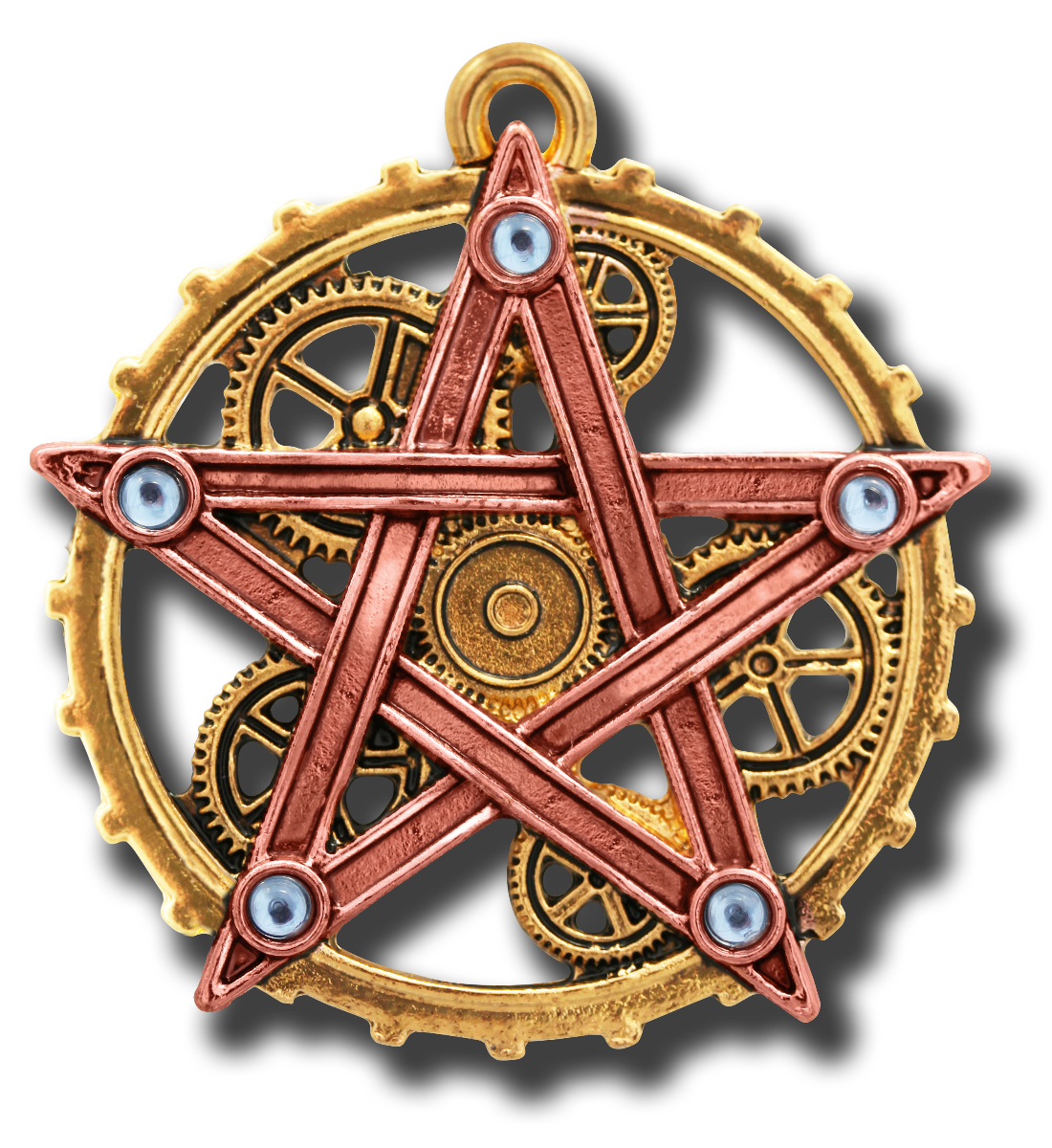 Feel the archaic, calming energy of the Penta Meridia flow through you as it balances & develops your insight. Features five clear oval man-made crystals on the pentagram points.