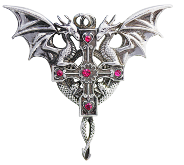 Exquisitely sculpted Gothic Fantasy designs, finished in silver and gold, and enhanced with Swavorski crystals and enamelling. Each piece comes with a matching chain and is presented in a Galraedia jewellery box.