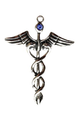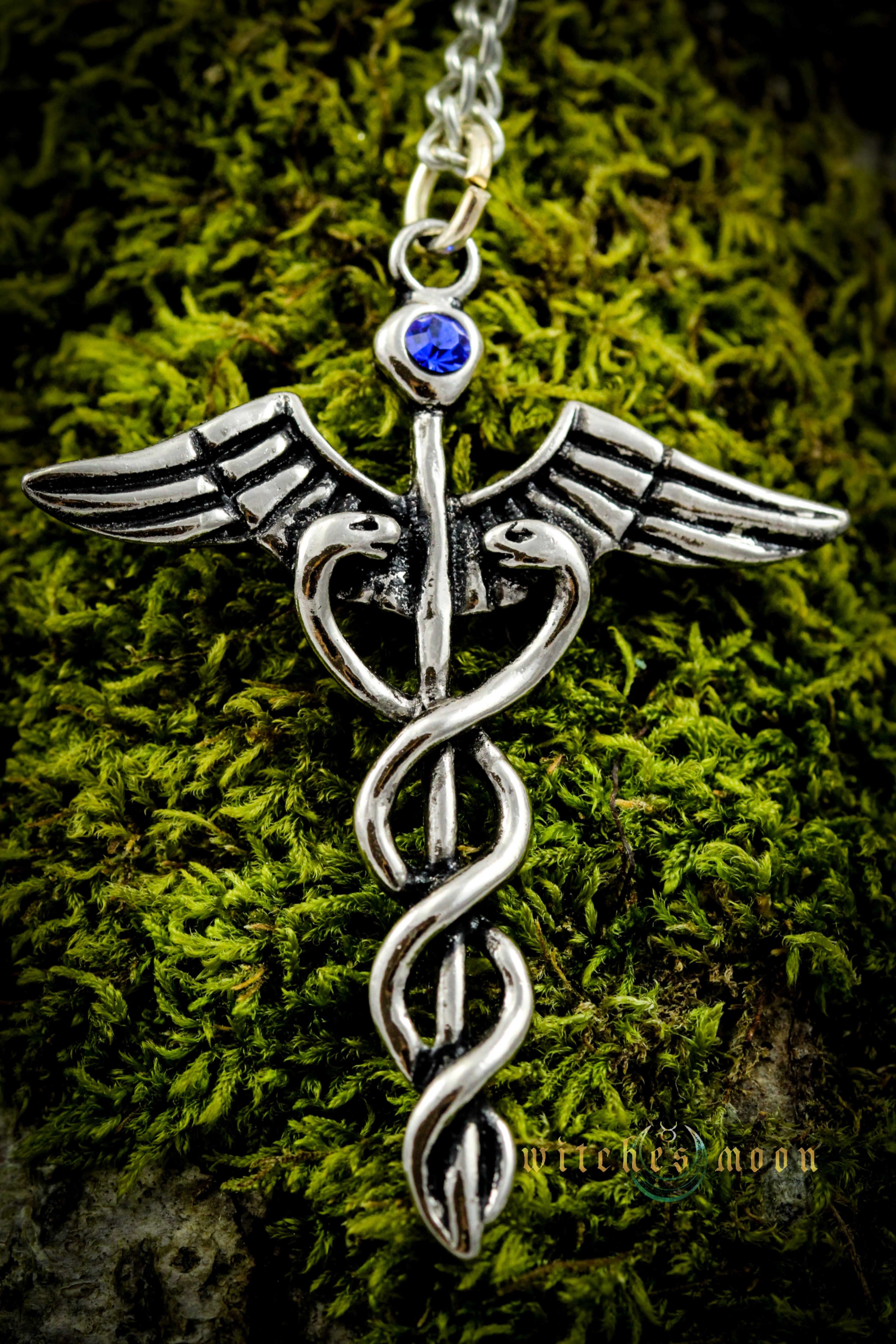 The Caduceus is a symbol of the planet Mercury, and therefore is associated with the god Mercury, whose main attribute is communication and healing. This amulet is worn for gaining Wisdom and Communication Skills.