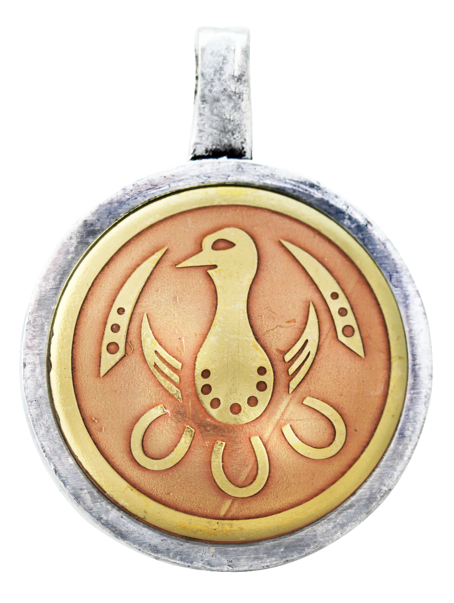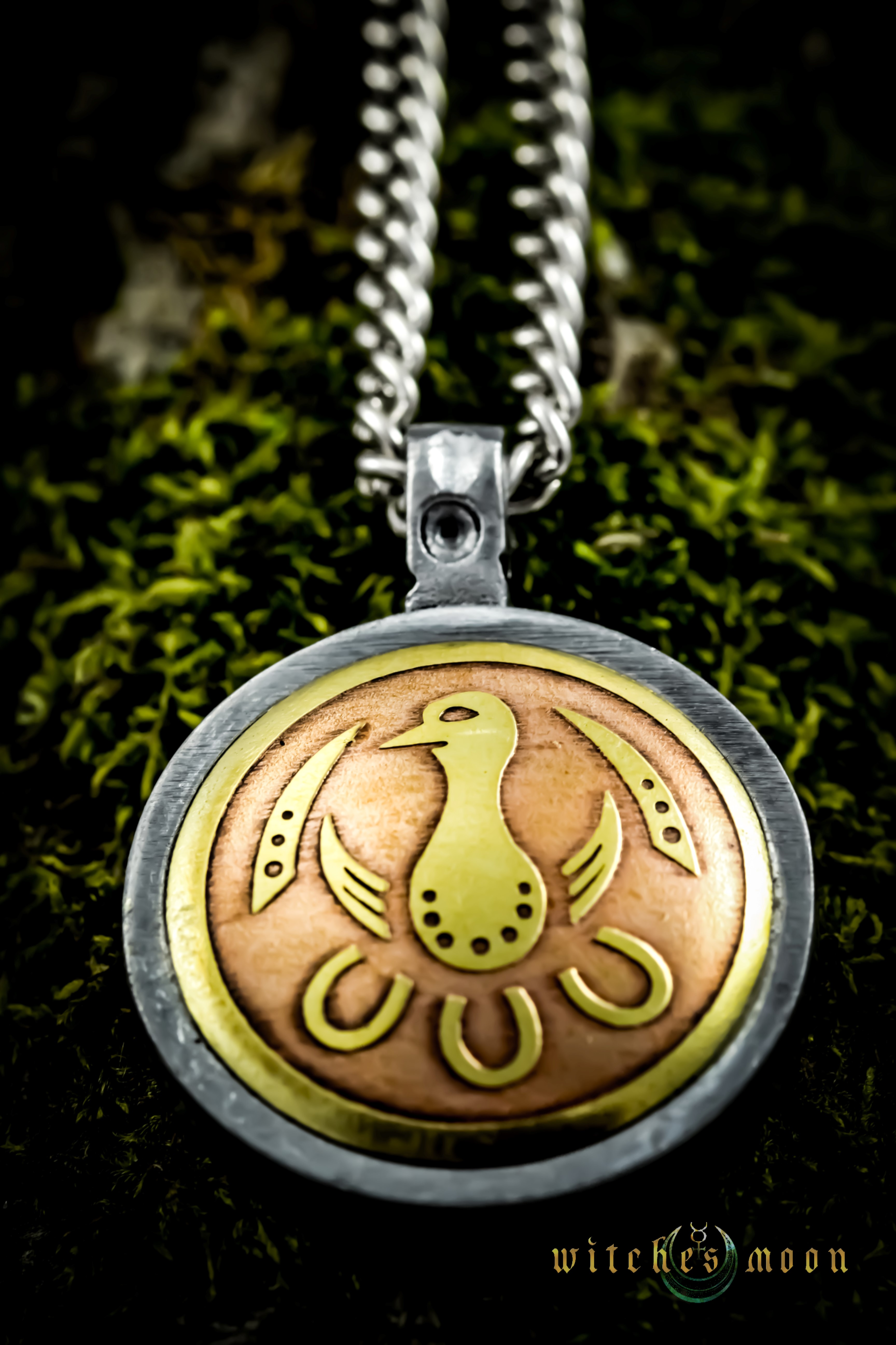 Finely crafted in brass and copper, a substantial talisman with magical powers drawn from the ancient wisdom of the symbols with which it is embossed. Supplied with a chain and a bespoke gift box.