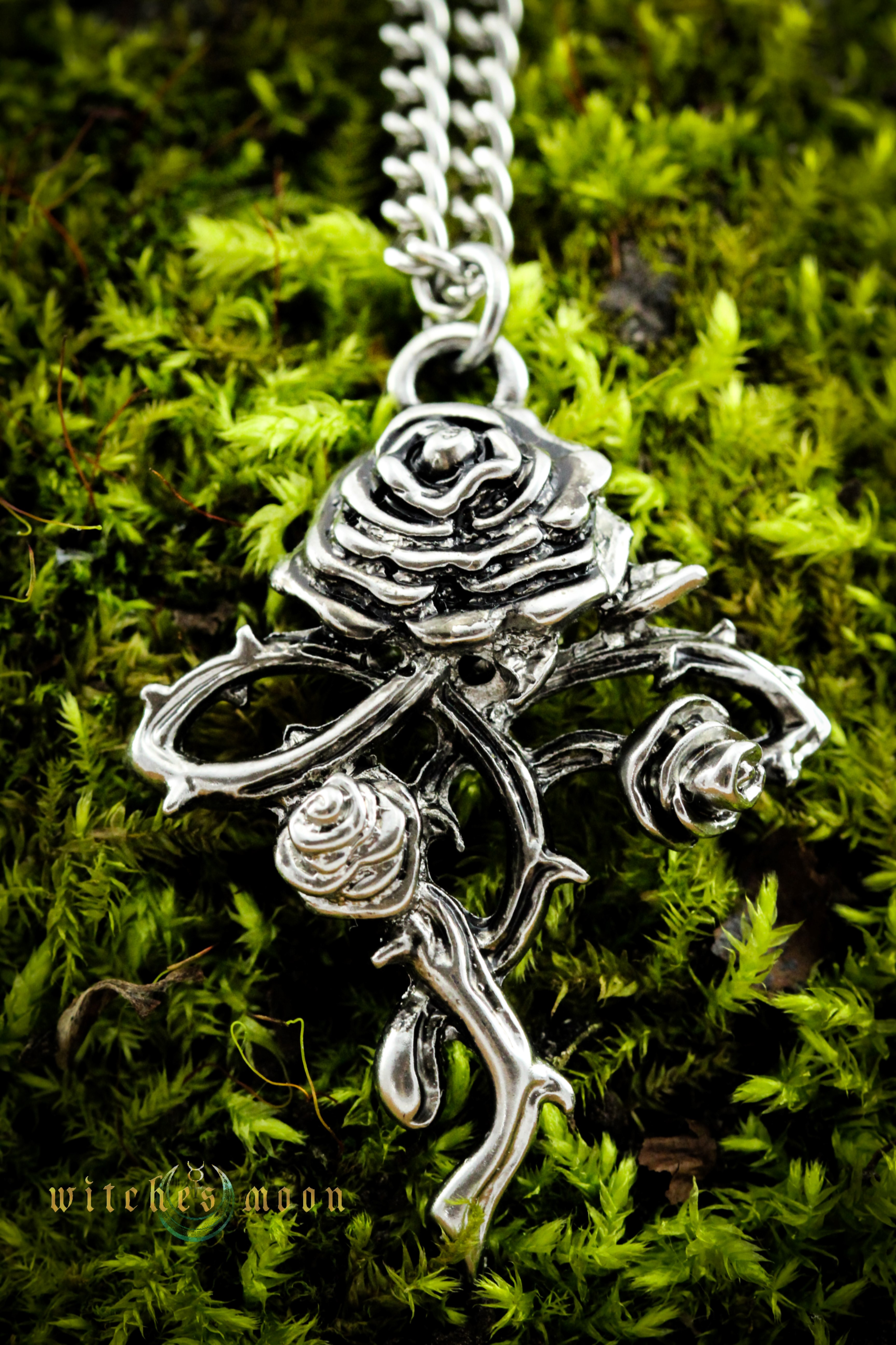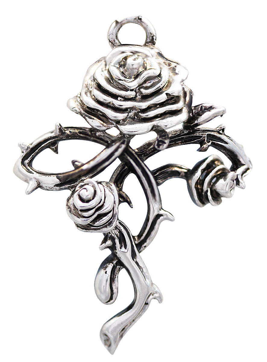 Regarded by many as a magical metaphor for the eternal beauty of life surrounded by the harsh thorns of everyday reality this beautiful interpretation of the Rosycroix is reputed to bestow upon its wearer the powers of Youthfulness and Imortality.