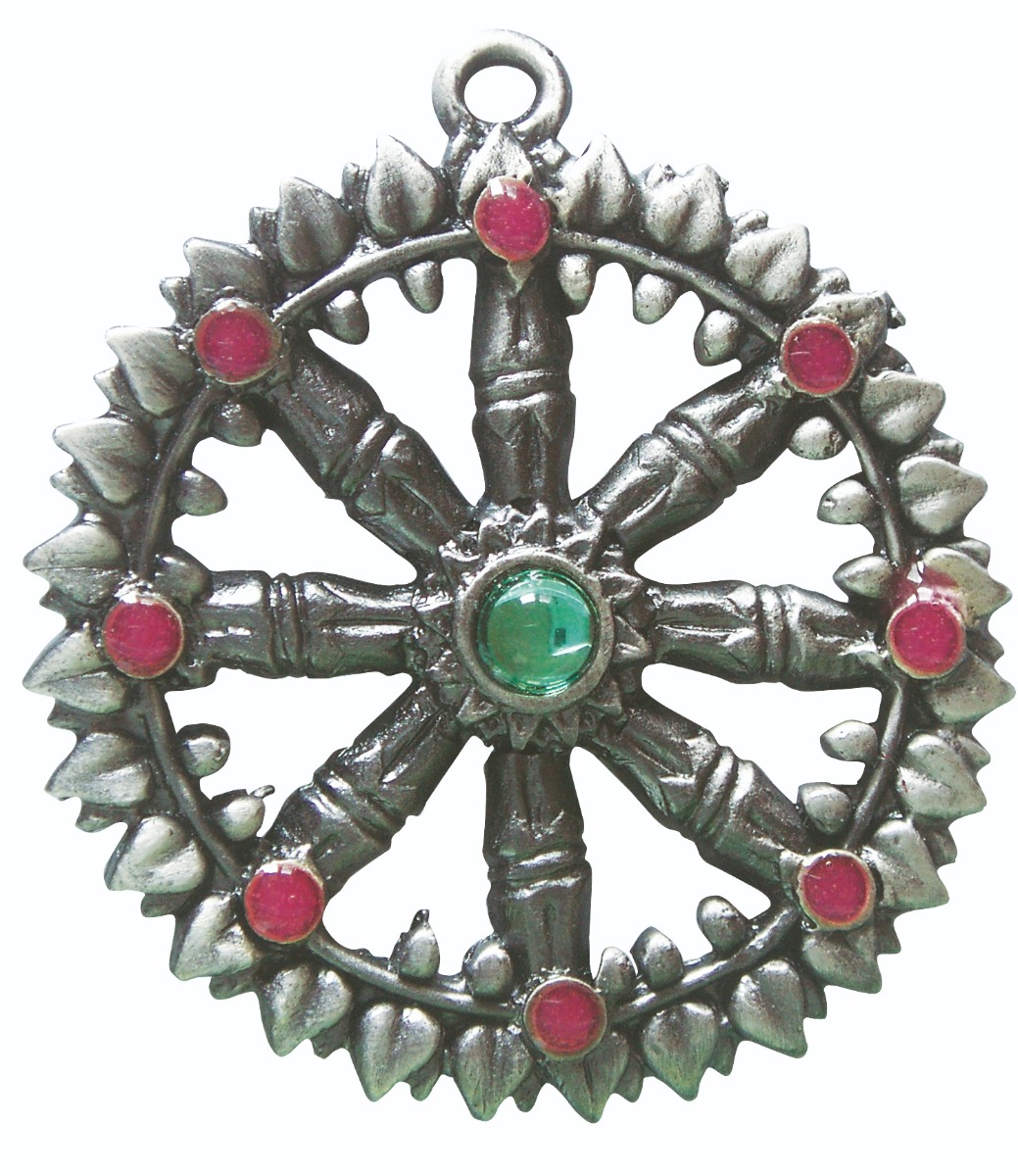 The dharma wheel is precious to all seekers of truth. Its eight spokes represent the eightfold path, as its circle symbolises the perfection of Buddha’s teachings.