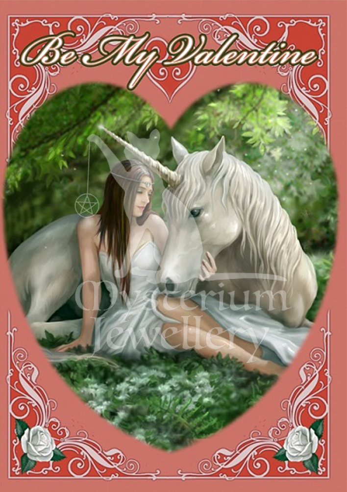 A greeting card by Anne Stokes. Cello-wrapped. The inside is blank, ready for your own personal message and comes with a beautifully designed and colourful envelope. A great pleasure to send and a wonderful and exciting surprise to receive.